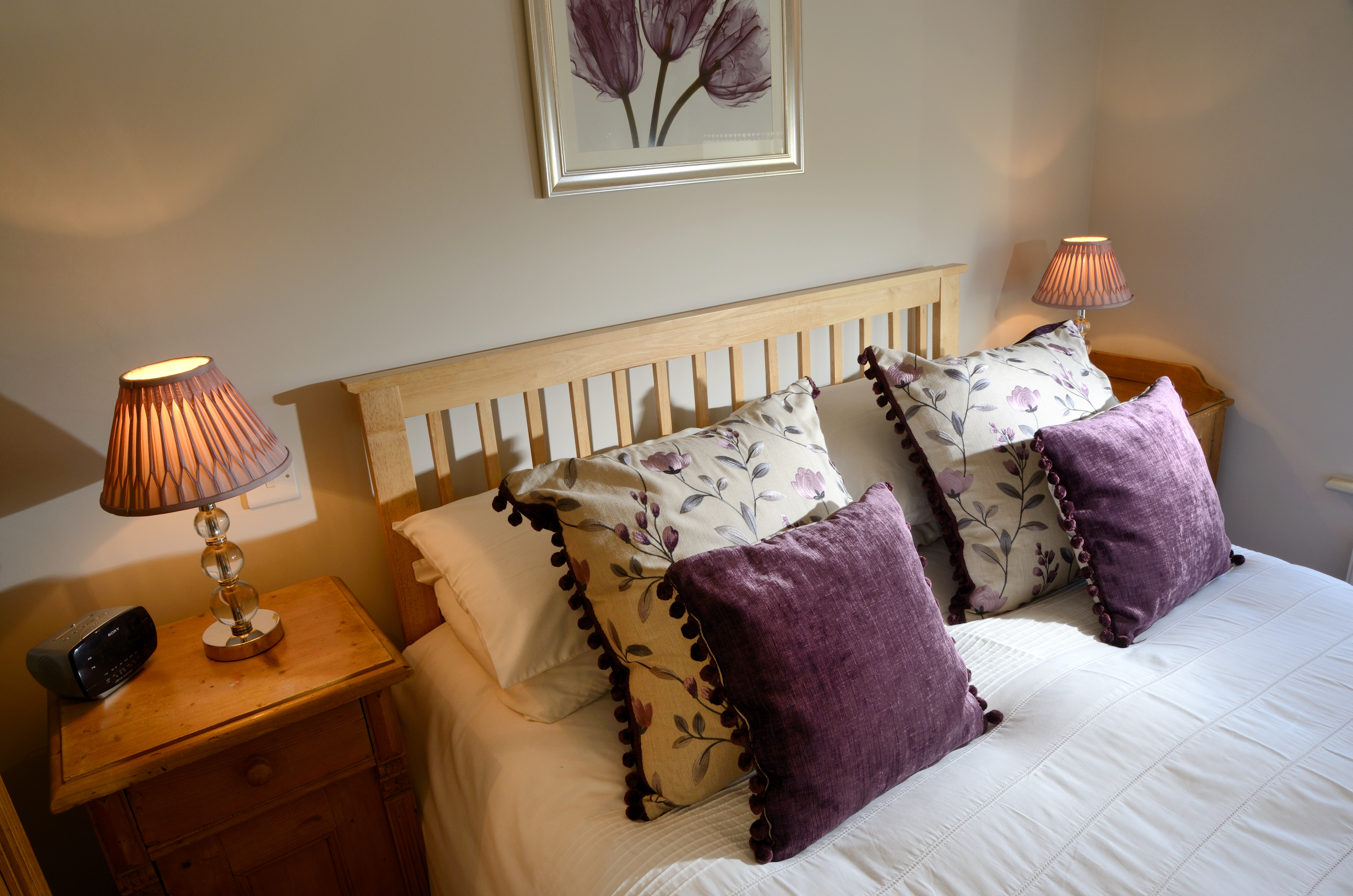 The first floor has two double bedrooms, the first is furnished with a super-king sized bed and has a separate shower room; the second has a five-foot queen-sized bed and an en-suite bathroom. Each comes with towels and linen included, and oil fired central heating keeps the rooms warm all year round.