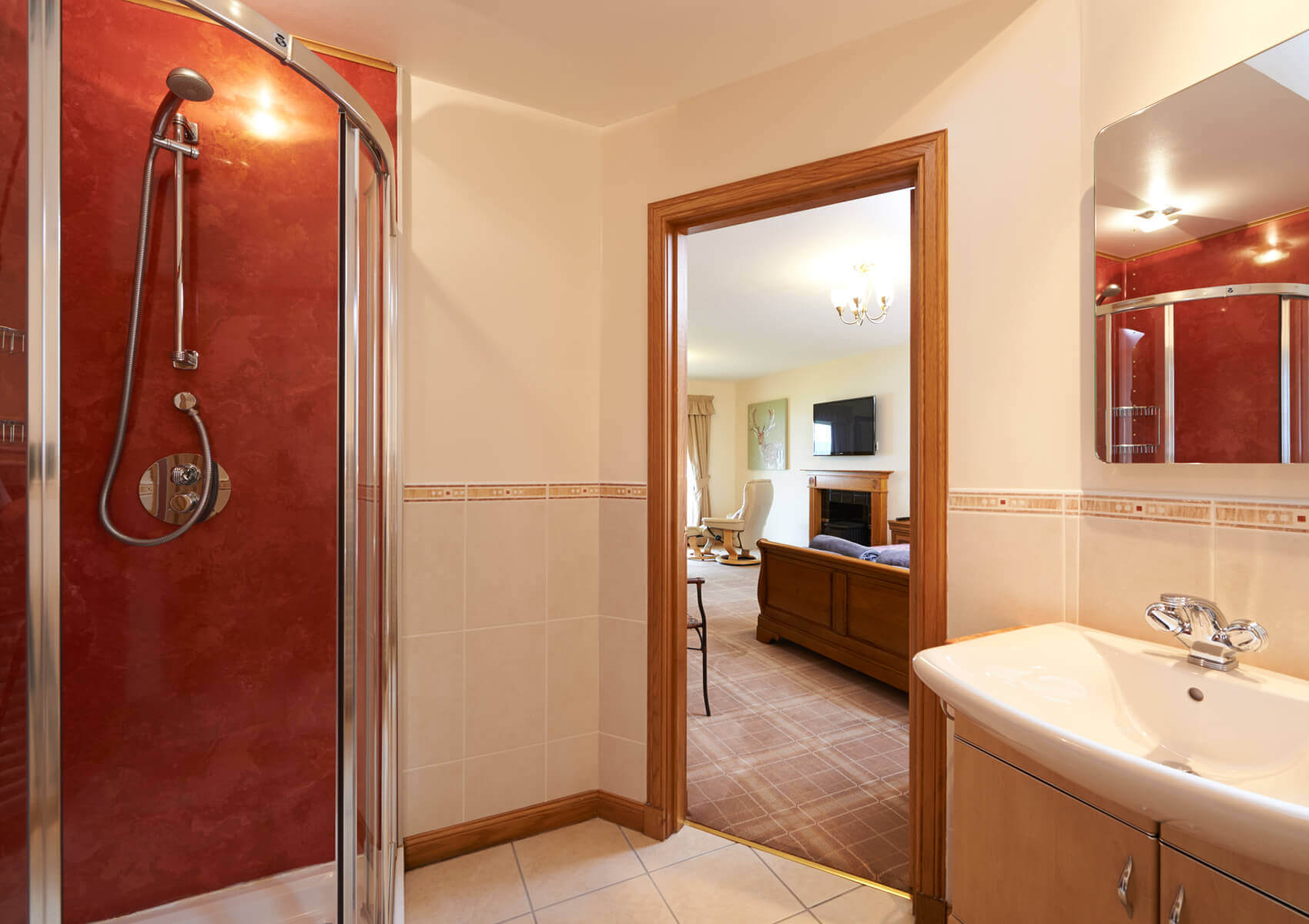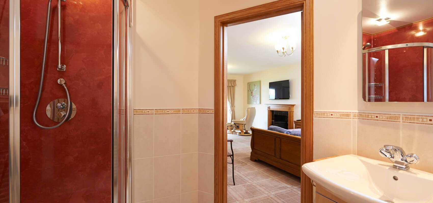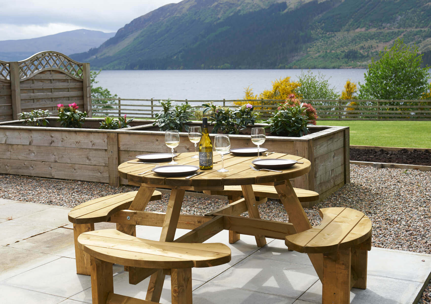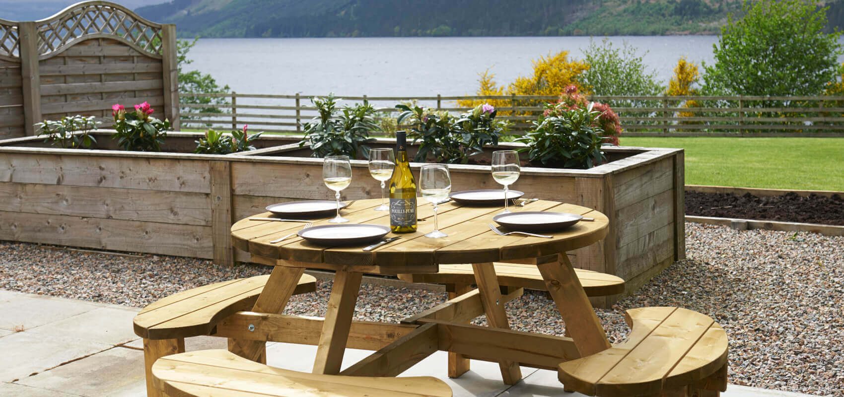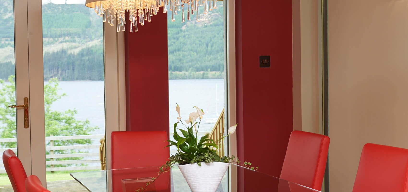 Each bedroom has french windows leading out onto a decking area overlooking the loch. The two principal bedroom suites have 32 inch televisions and one has a wood burning stove. Each of these two main bedrooms have seating and relaxing areas from which to enjoy the loch views and watch the boats going up and down the loch.