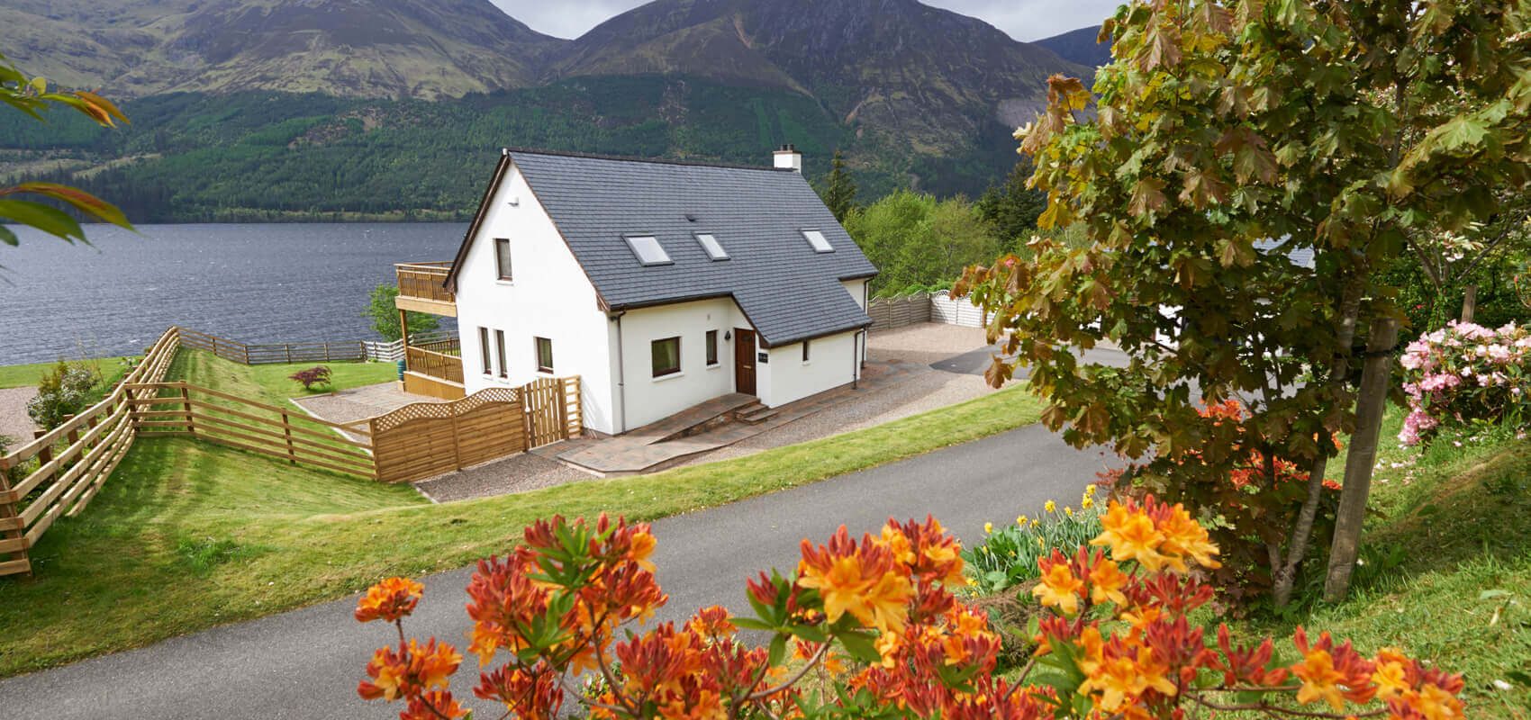 Sleeps 6. Three double bedrooms, each with en-suite facilities and loch views.