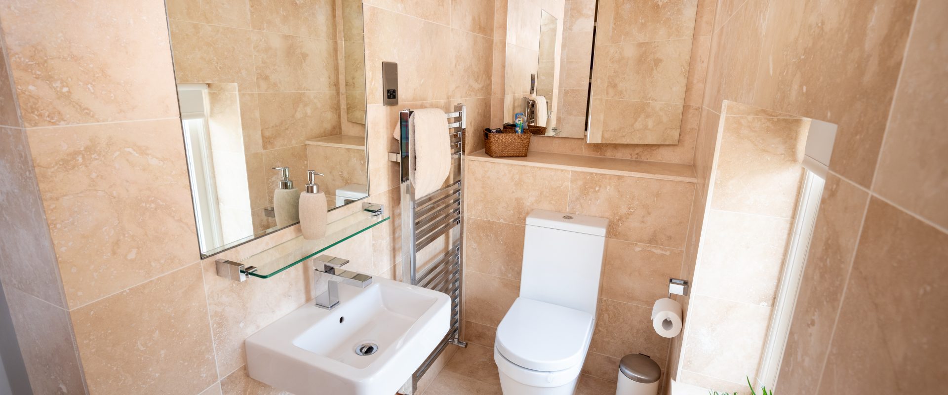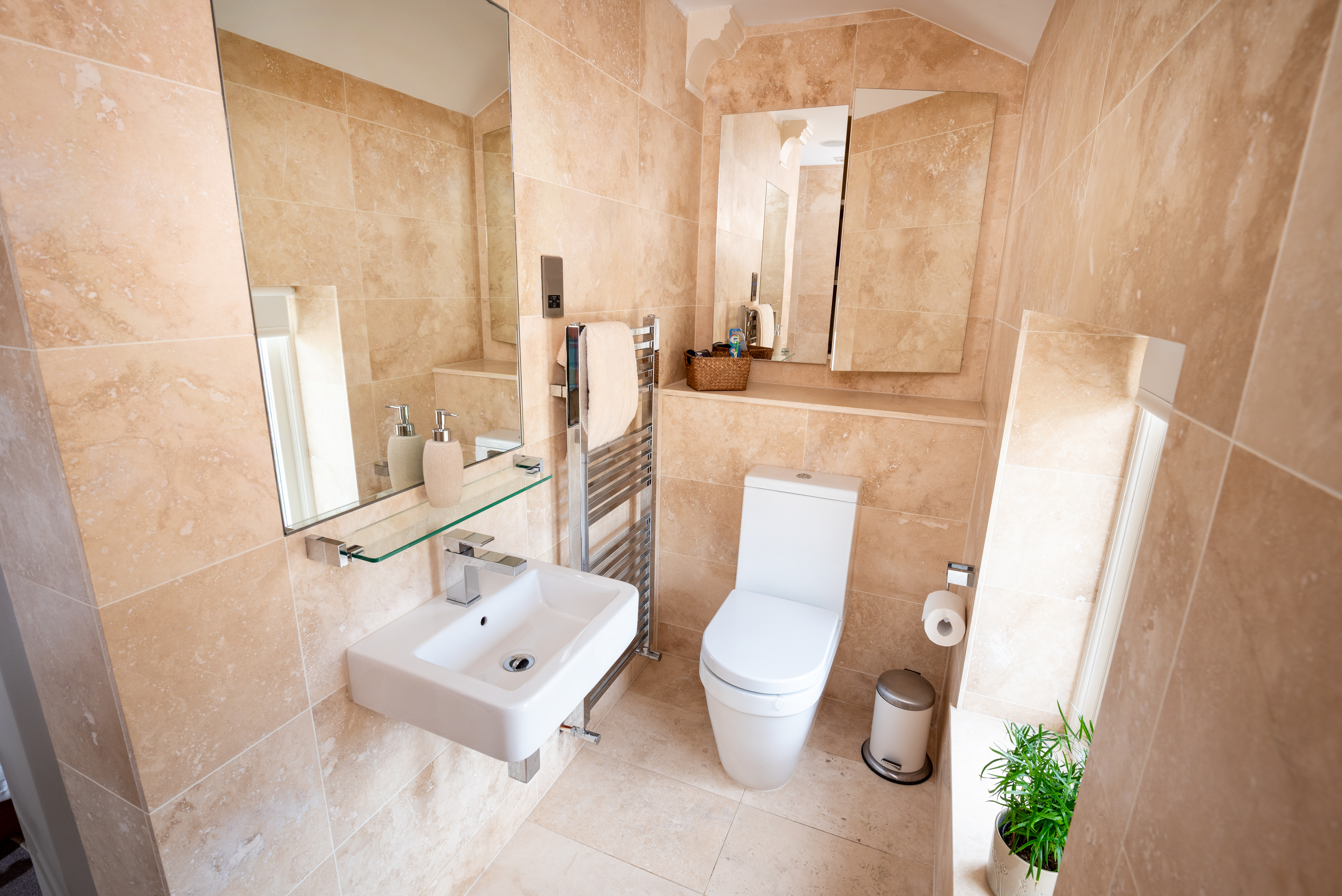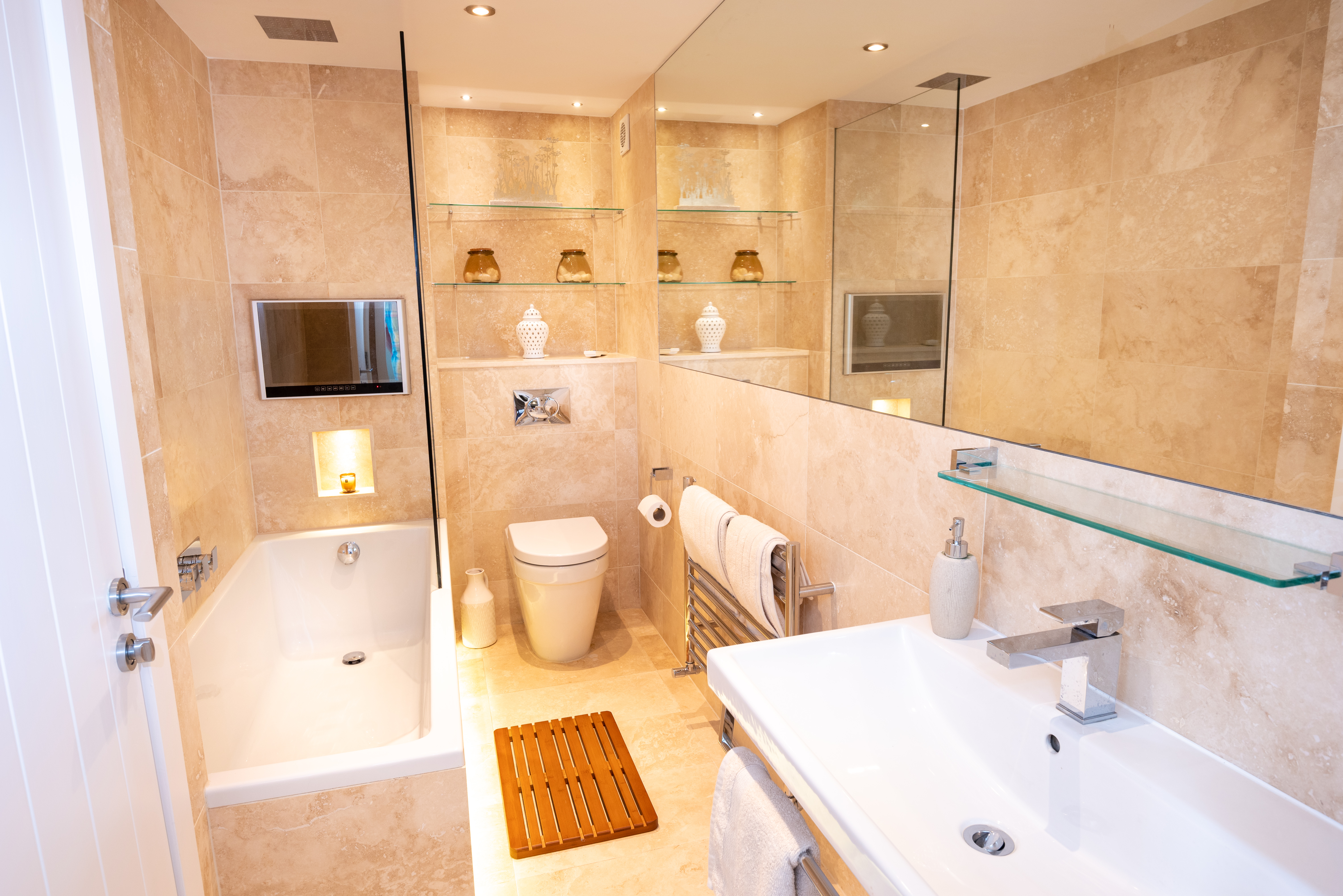 Both bedrooms are on the lower level offering two double bedrooms with smart TV’s and storage. The master has a modern ‘open en-suite’ with rainfall shower TV & WC. The second bedroom has use of the main bathroom with a ‘jack & jill’ door opening up to a luxurious modern shower over bath, WC & TV.