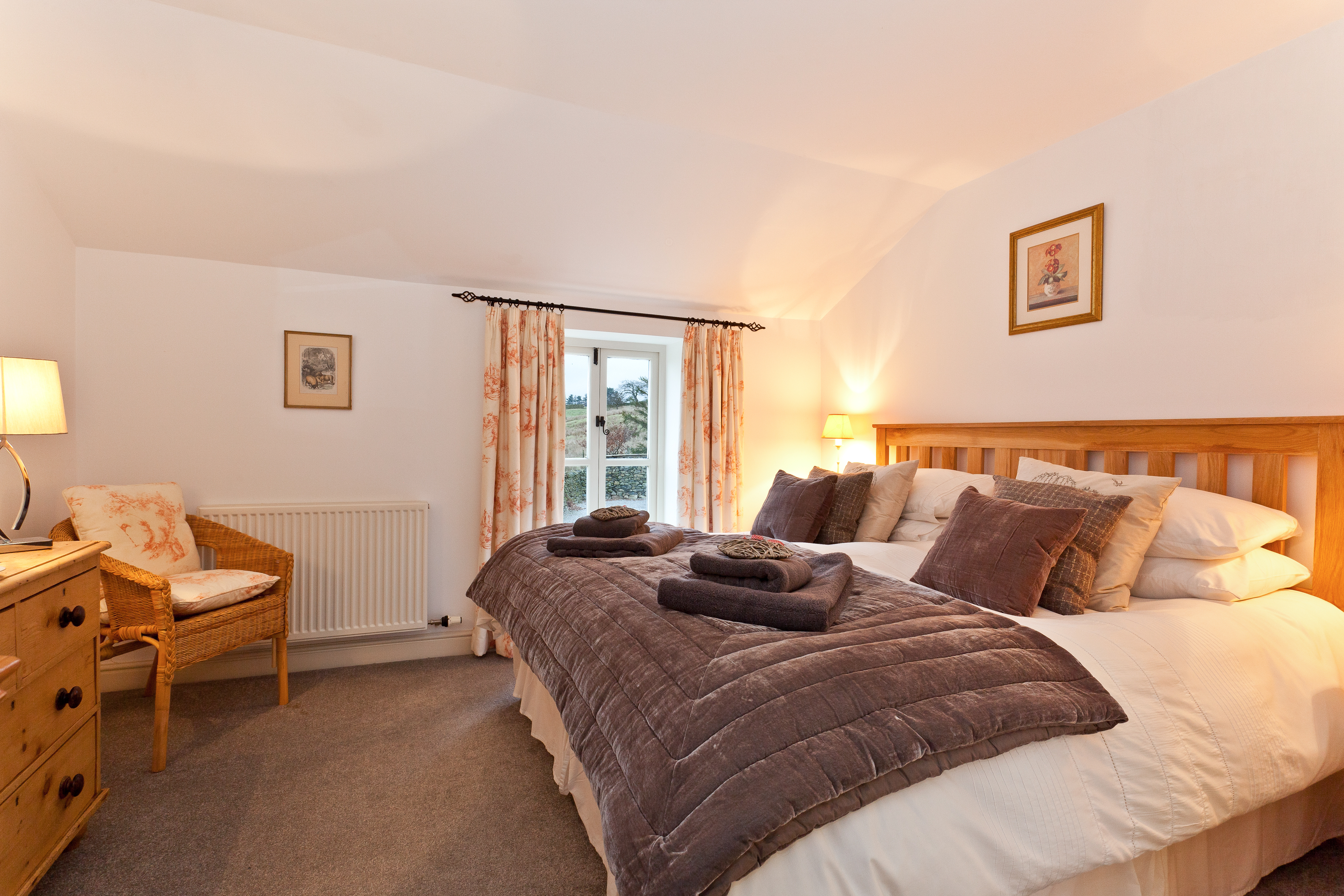 There is one double bedroom with super king-size bed. En-suite bathroom with bath and separate shower. Shaver socket.